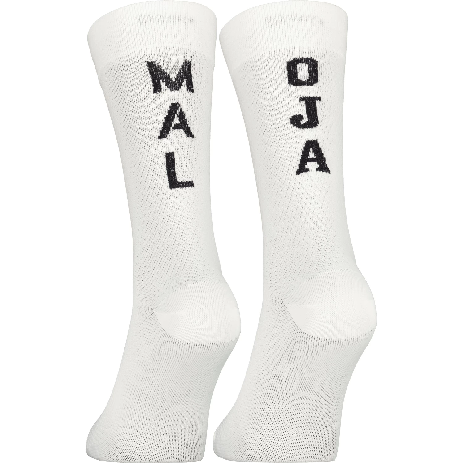 Quick-drying sports socks in modern length with split Maloja lettering.
