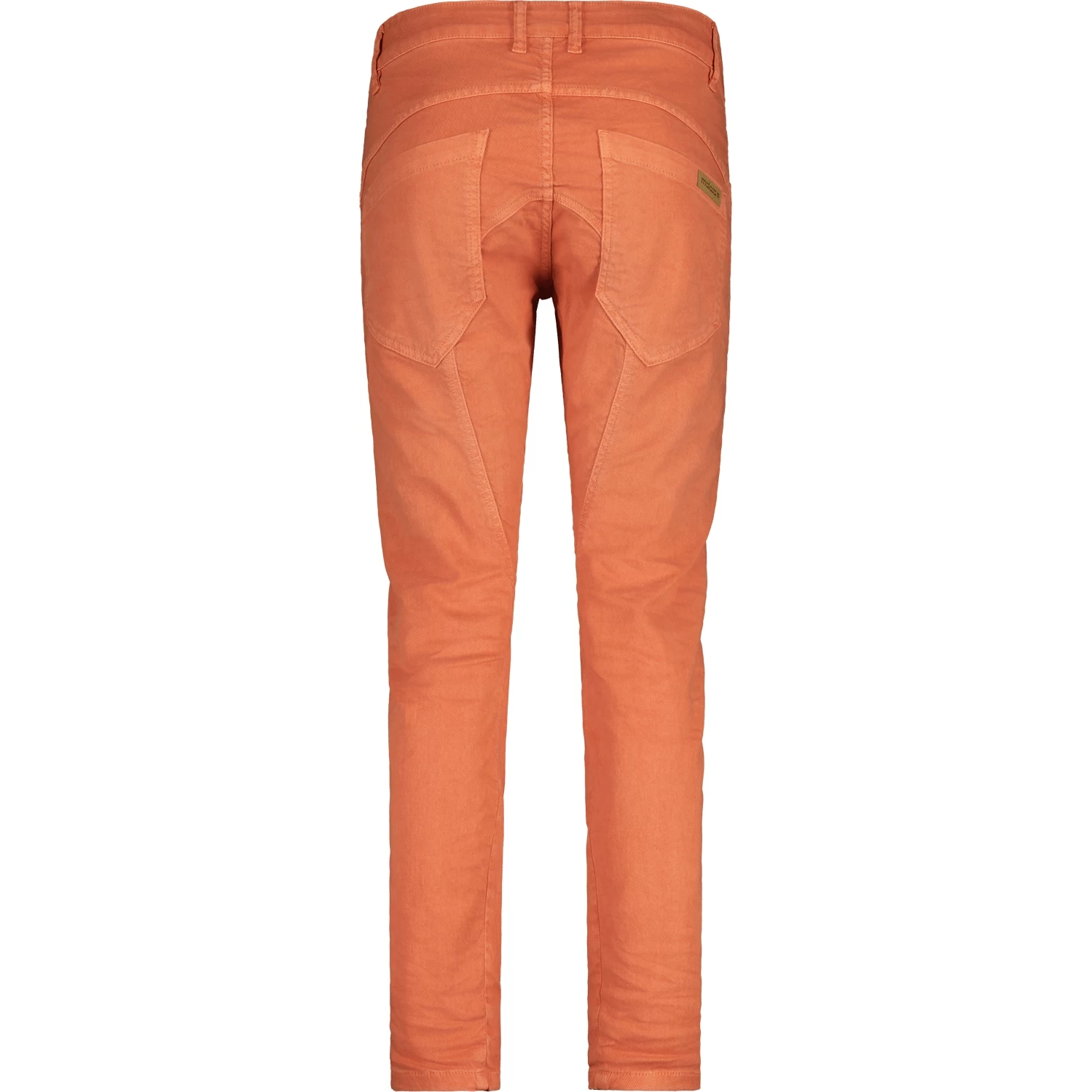 Garment Dye Pants with turned side seam, two front slash pockets and one coin pocket, two back patch pockets, low waist fit and slim leg, eye-catching front button placket. Small Maloja patch on the right back pocket.