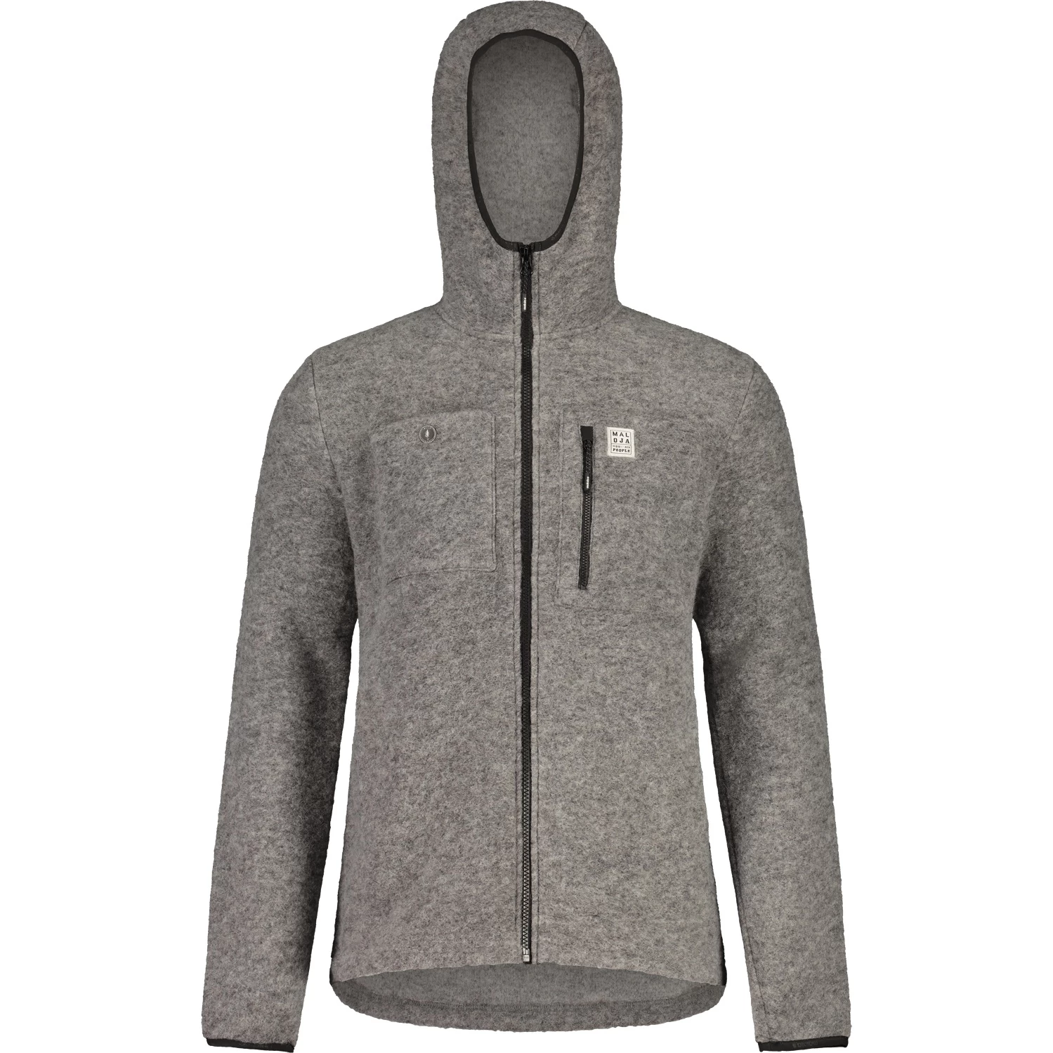 The warming Alpwool material with recycled wool gives this hooded jacket an inimitable natural feel. Two chest pockets, two side pockets with zipper, Maloja patch on the left chest pocket.