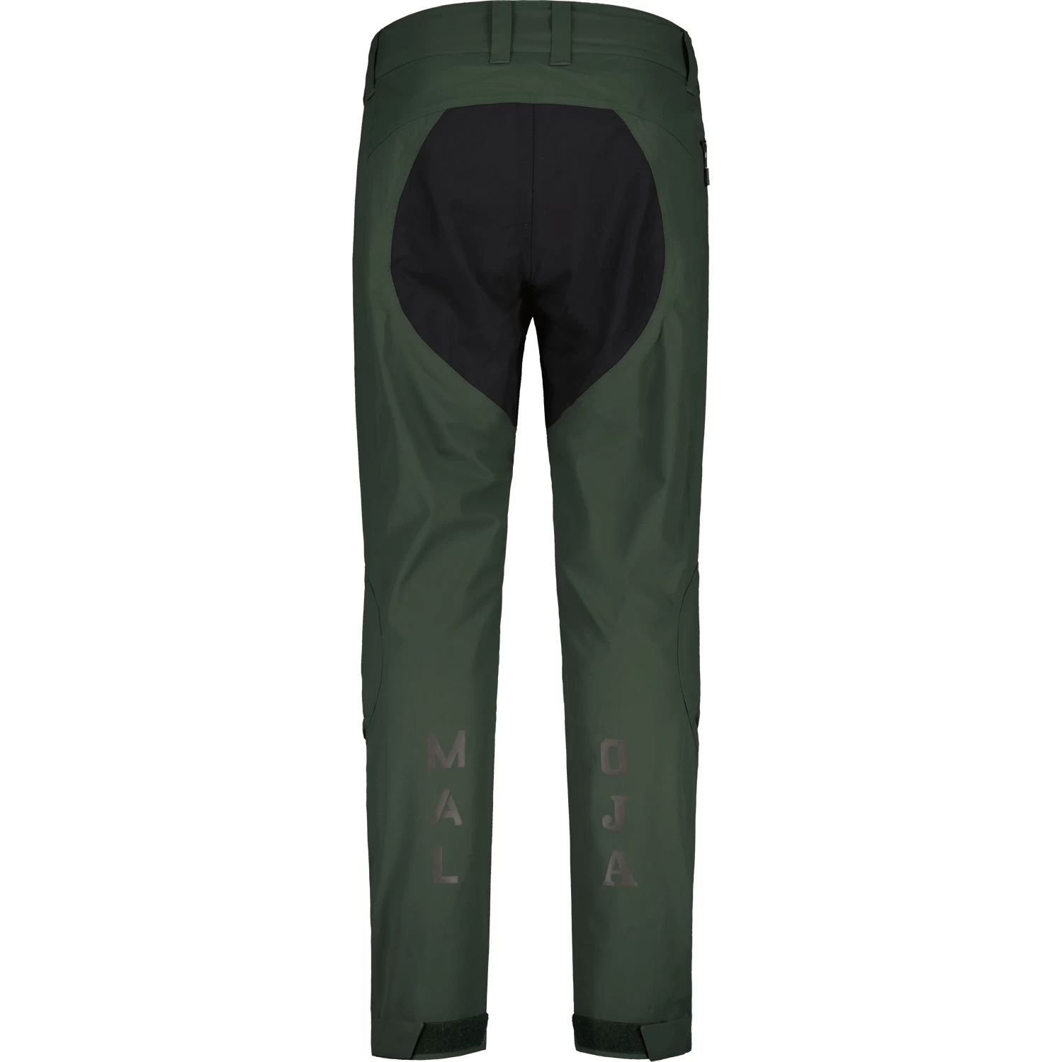 The slightly stretchy, robust Stormshell material offers weather protection and warms comfortably. Side ventilation zippers, pre-shaped knees, waist width adjustment and belt loops, Velcro-adjustable leg opening, Cordura insert on the bottom. Maloja label on the thigh, reflective two-part Maloja lettering on the calves.