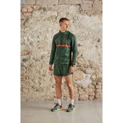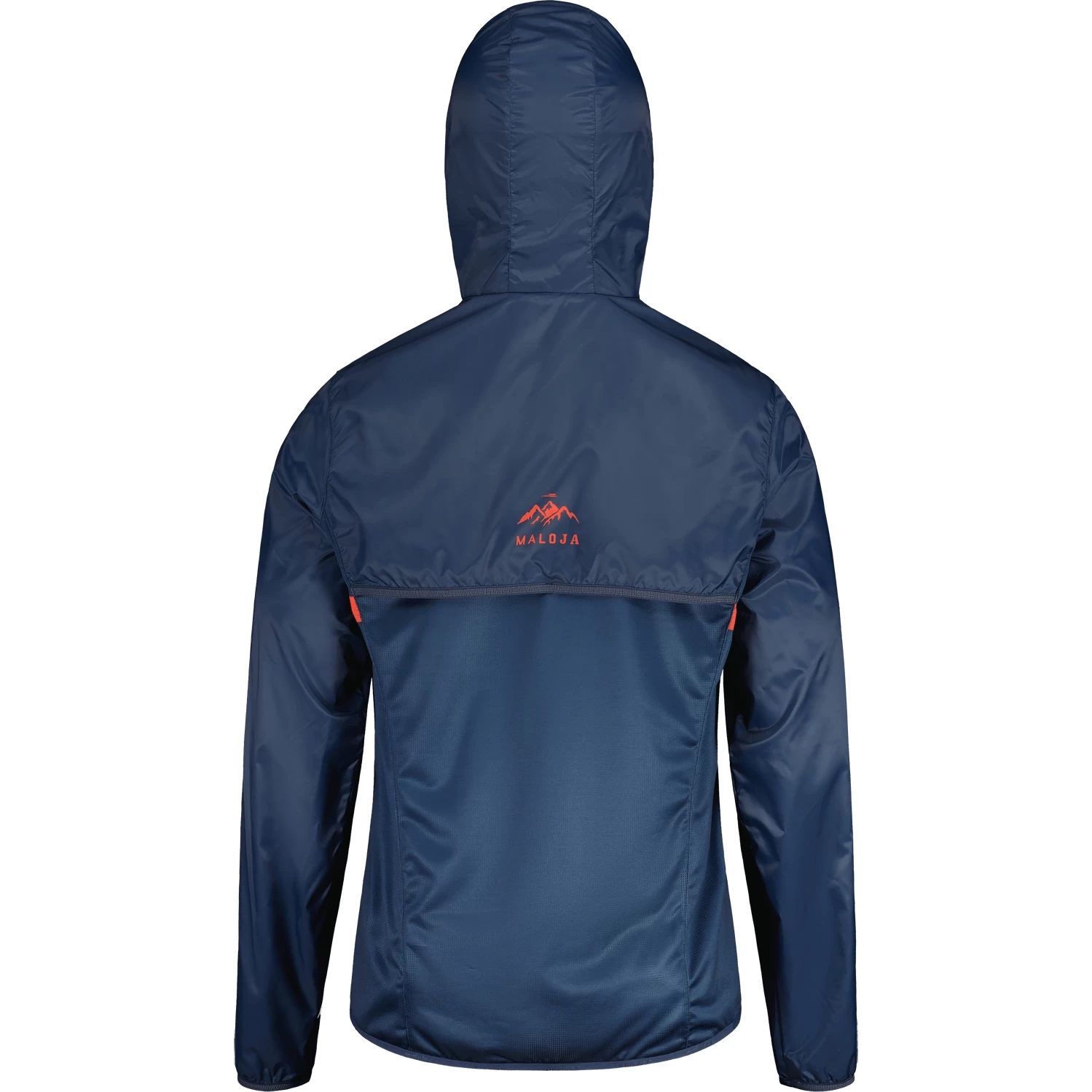 Made from Superfine polyester, the jacket is lightweight, packs down small, is wind resistant and has a PFC-free water repellent finish. The reflective hems on the sleeves and hood improve visibility in the dark, the mesh inserts on the back and side panels help with heat regulation and moisture transport. New and particularly practical is the loop behind the zipper, which can be closed with a push button. So you can run even with the zipper open without losing the jacket. Mountain graphics on the front and back, split Maloja lettering on the forearms.