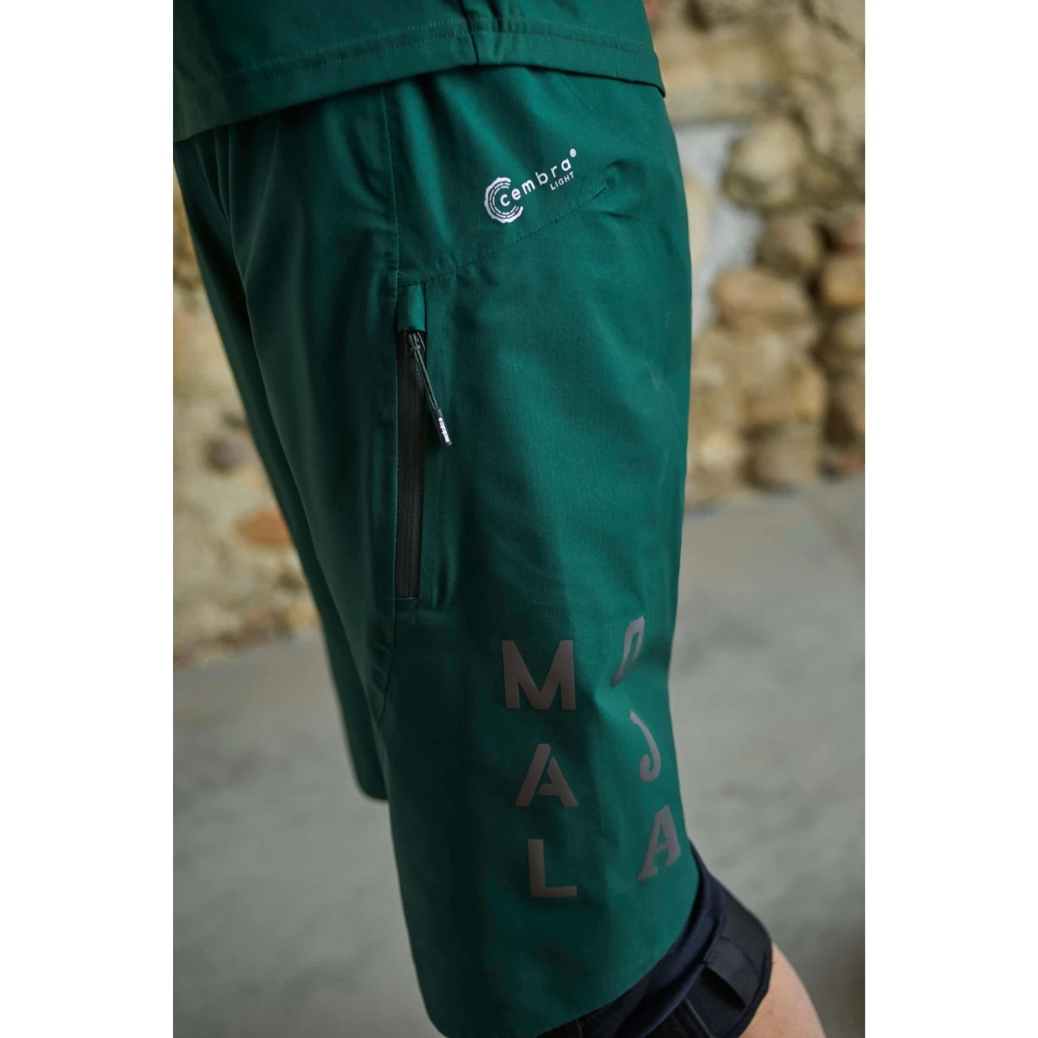 The functional shorts made from our three-layer cembra LIGHT material are waterproof and windproof, the material is partly made from recycled materials and is 100% recyclable. In the bottom area, the more robust cembra RESIST material provides good abrasion resistance. The ergonomic cut with longer legs over the knees fits over protectors, two side pockets with water-repellent zips offer storage space, reflective details ensure good visibility.