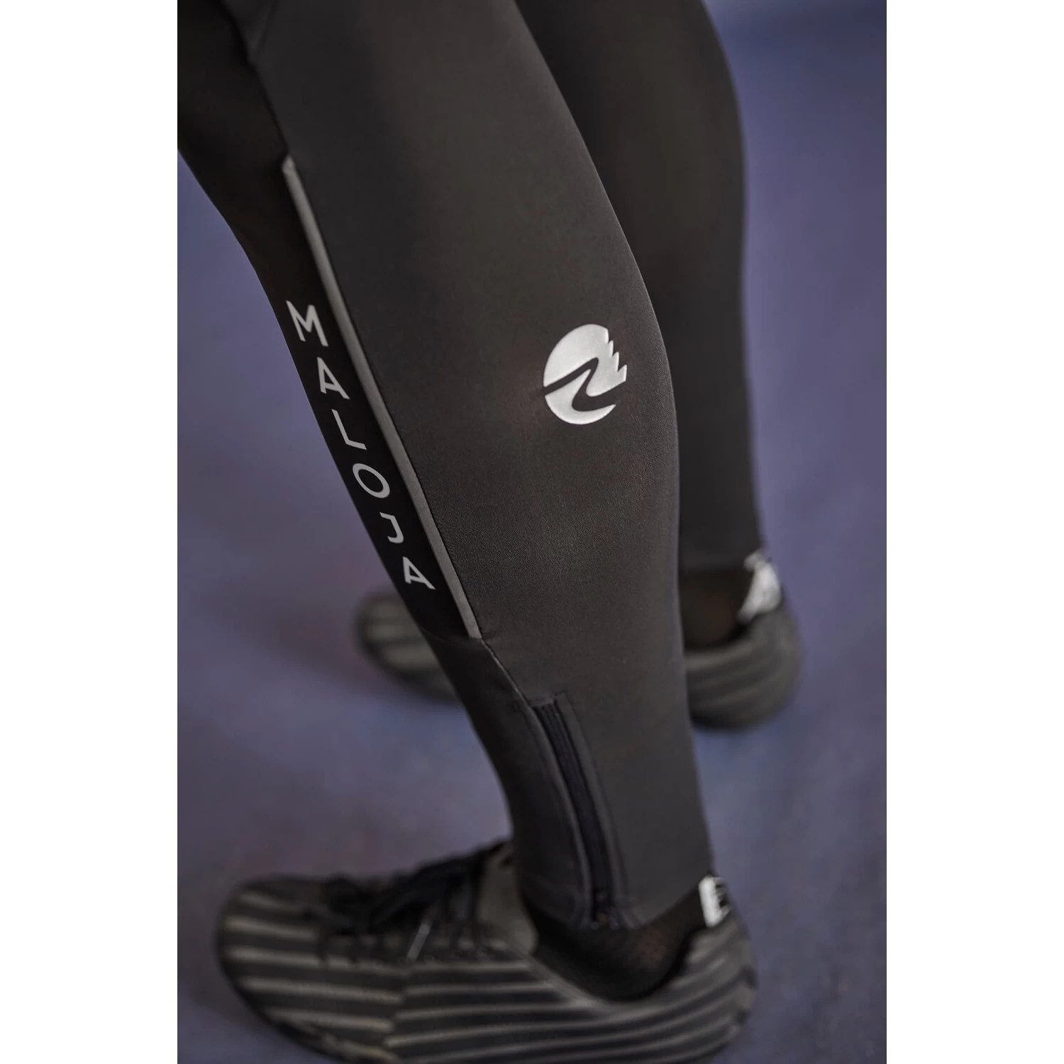 These thermal bib tights of our road cycling team Maloja Pushbikers were developed in close cooperation with the riders. The inside roughened fleece as well as the knees and lower back made of windproof material provide good thermal performance on cold days, the tights has a PFC-free, water-repellent finish.