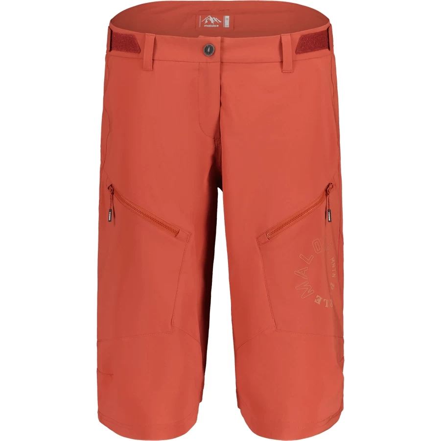 RossaM. is cut in such a way that the pant legs always cover the knee pads, so the shorts are recommended for enduro, park and technical trail use. The elastic, partly recycled material is PFC-free, water-repellent and allows full freedom of movement. Lasered ventilation holes on the inner leg improve ventilation. Two large zippered cargo pockets offer plenty of space. Large Maloja print on the left cargo pocket.