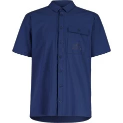 A classic half-sleeved shirt with a narrow collar and full-length button placket, the technical material ensures high breathability and dries quickly. Printed breast pocket with button closure, Maloja patch on the back.