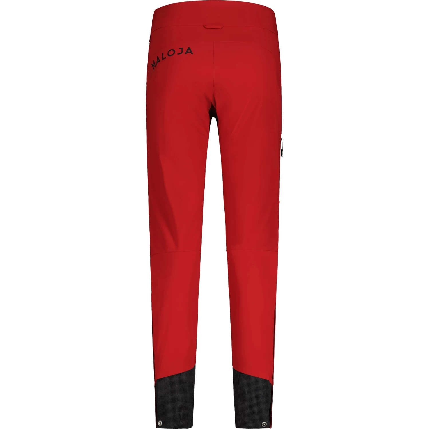 Due to the stretchy material SangayM. offers plenty of freedom of movement during ski touring, the waistband width adjustment and zippered leg openings provide good adjustability. Two side zipper pockets and a zipper pocket on the right thigh. Happy Mountain patch on the thigh pocket, Maloja lettering on the back upper left.