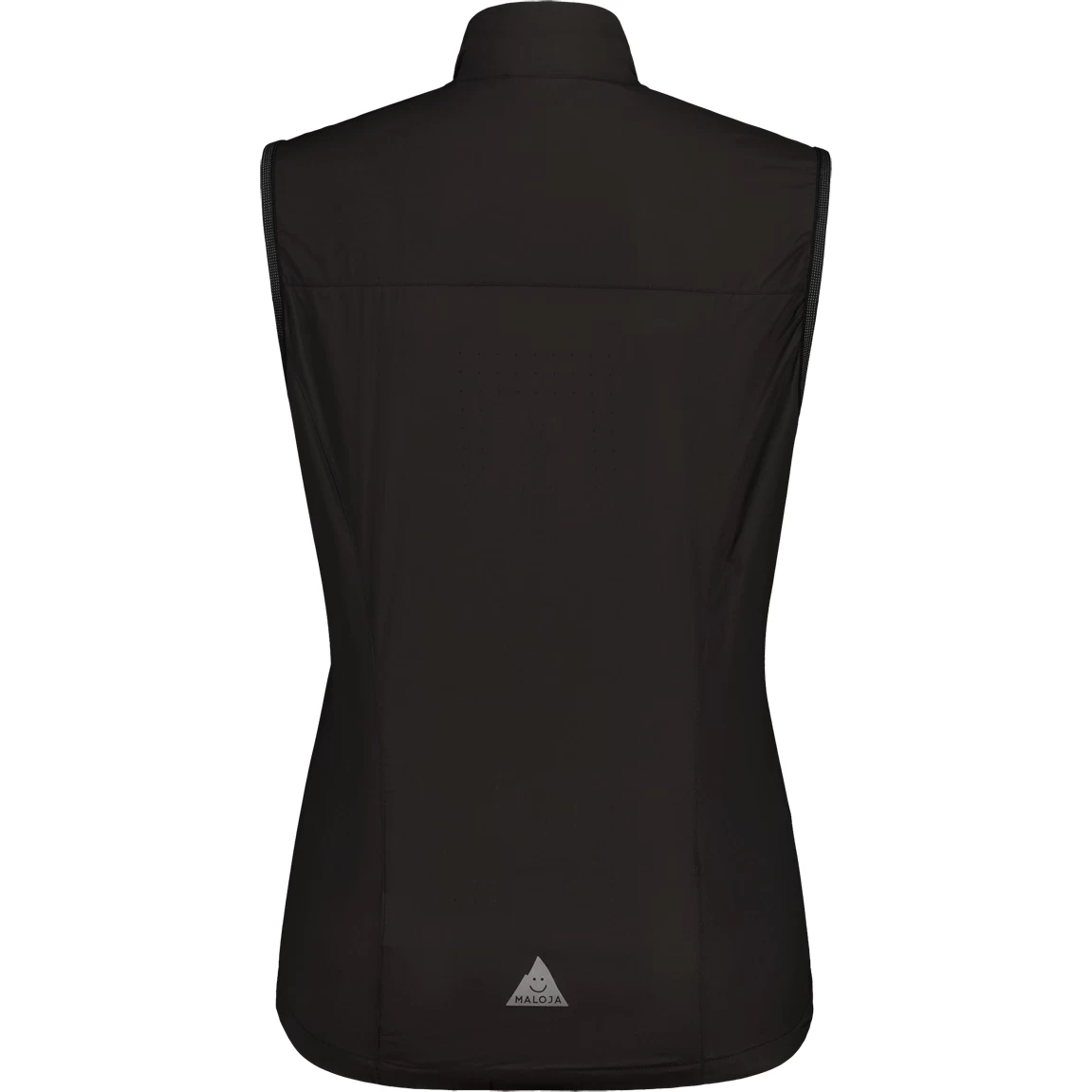 The SeisM. Vest is windproof and equipped with an environmentally friendly, water-repellent finish, the perforated VELO LOVE detail of finely lasered ventilation holes on the back provides good ventilation. The bike vest is made of a thin, stretchy material, wears comfortably and packs very small in the integrated pocket. Simple design with vertical Maloja lettering on the chest and reflective Happy Mountain logo on the back.