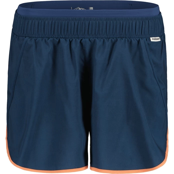 The shorts made of running stretch in a simple look with integrated inner shorts, elastic drawstring waistband and side pockets for mobile phone, keys and bars as well as reflective details offer all the technical features of modern trail running shorts. At the back there is an elaborate mesh pocket construction for bars and a windbreaker. The pants are super elastic, light and quick-drying. Split Maloja print on the back of the legs.