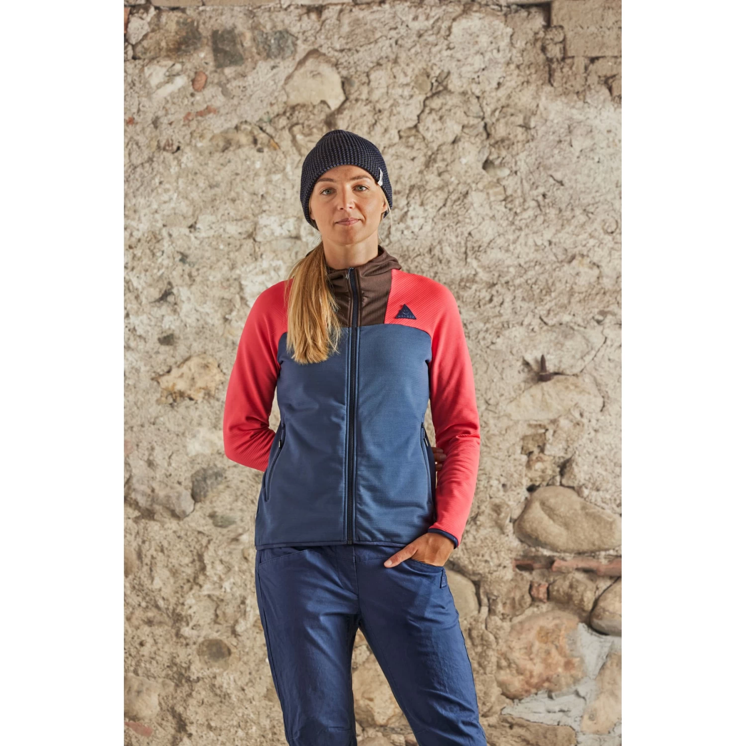 Warm midlayer made of quick-drying, breathable material, two zip pockets on the side. Happy Mountain patch on the chest, Mountain People embroidery on the back upper arm. With storm hood.