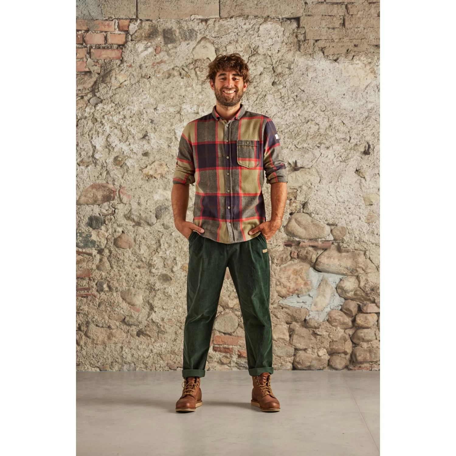 Organic cotton flannel shirt, button-down collar, patch chest pocket, modern back yoke, Maloja label on the upper left arm.