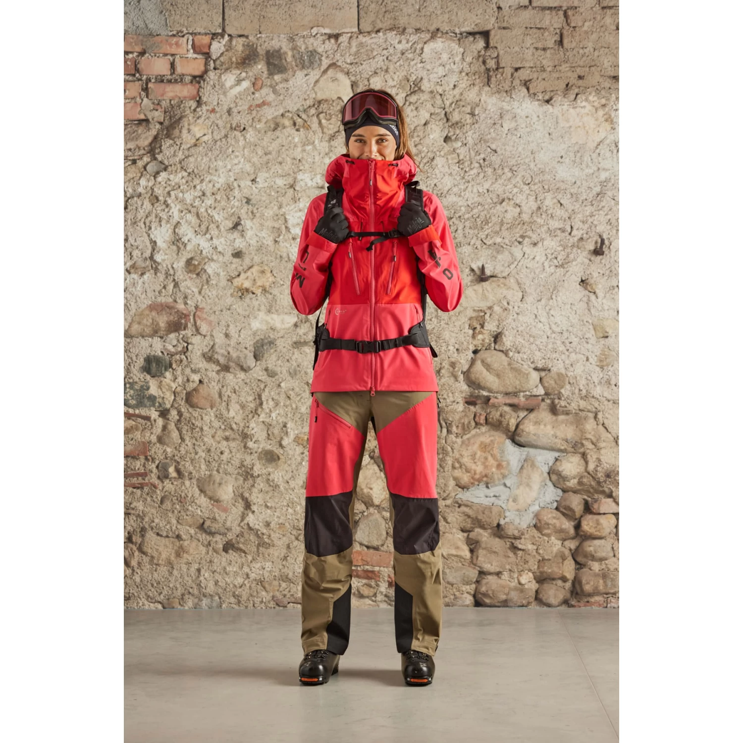 TolpeiM. brings casual style to the mountain with its clean, modern design, but the focus is on functional weather protection. The three-layer cembra® LIGHT material is waterproof and windproof and partly made from recycled materials. The anatomically shaped cut and 4-way stretch ensure high wearing comfort, ventilation zippers under the arms for maximum ventilation.