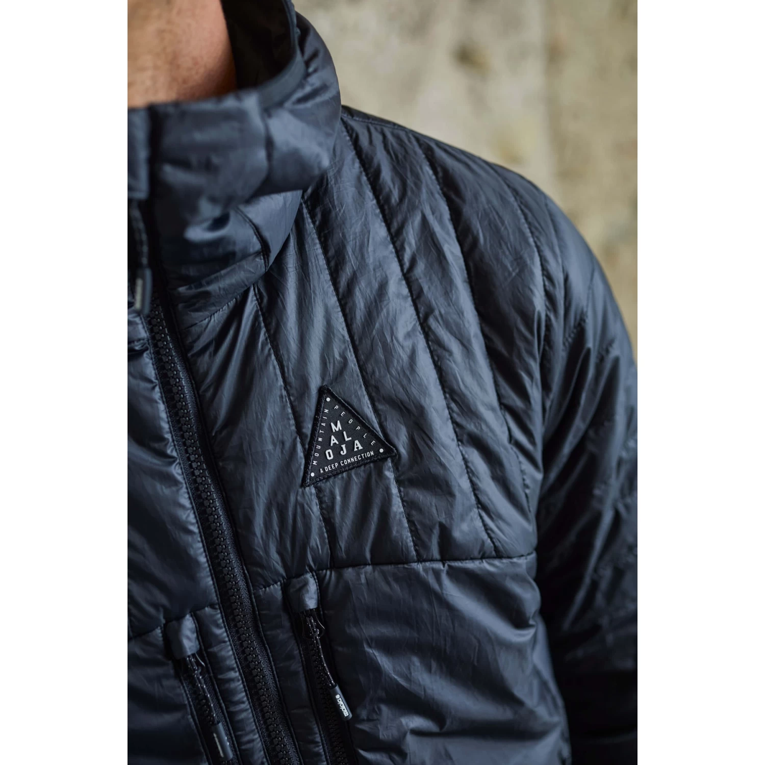 Warming Primaloft BIO padding, breathable inserts on the back and under the armpits, two side zippered pockets and two zippered chest pockets that are accessible even with the backpack straps closed. Maloja embroidery next to the left chest pocket.